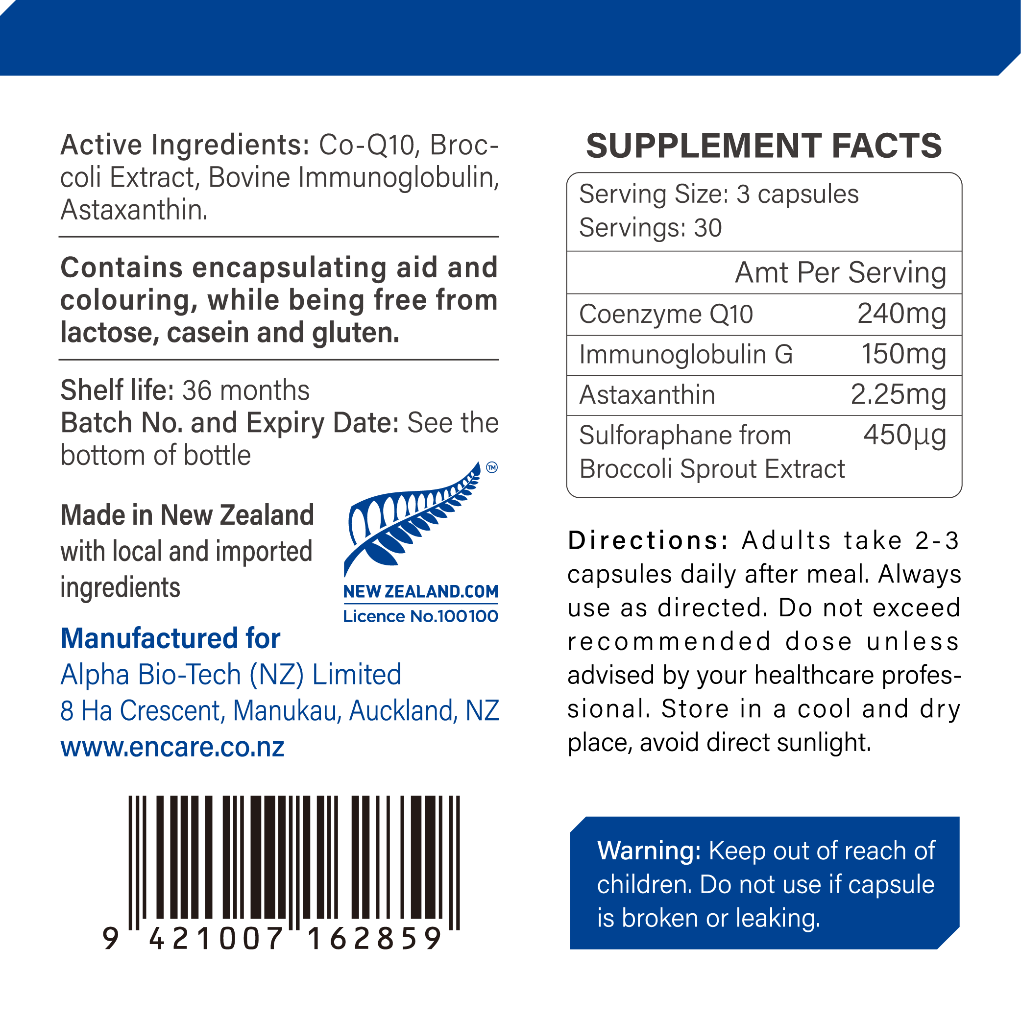 - Coenzyme Q10: 240mg